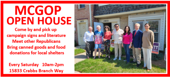 Come by, pick up some literature or a campaign sign and talk to other friendly MoCo Republicans. We'll be happy to see you.