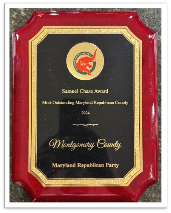 Last year, Montgomery County proudly received the prestigious Samuel Chase Award from the Maryland GOP for being the most outstanding county in the state. This was an exceptional honor, especially for a deep-blue county like ours.