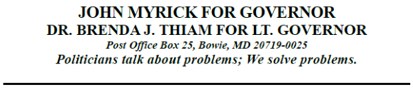 Website: Johnmyrickformdgovernor.org Phone: (301) 751-5651